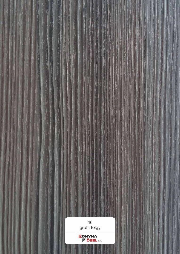 Elülső rész: 18 mm-es, mindkét oldalon a színazonos laminált forgácslap, 0,6 mm PVC élzárással.